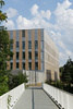 Indeed, the depth of the building volumes becomes apparent upon approaching this compact prism. And it is by exploring it that the visitor discovers its library and its patios, created on the ground floor through a clever arrangement of openings. On the first floor, through the "urban window" formed by alternating heights, the architect has framed an unexpected view over the side buildings.